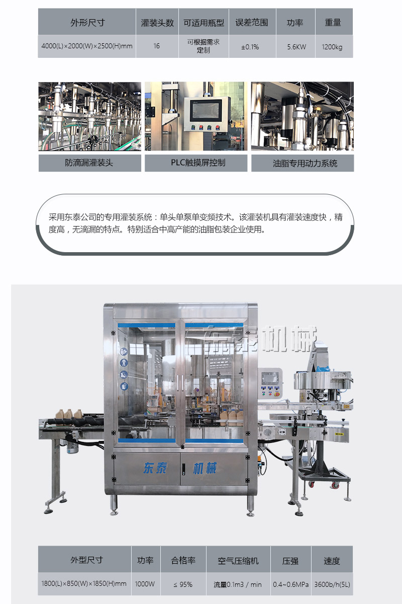 2.采用下潛式灌裝,在桶口以內(nèi)約5-8mm處進(jìn)行灌裝,下料口設(shè)計(jì),避免了灌裝速度快產(chǎn)生細(xì)小油珠噴濺污染瓶